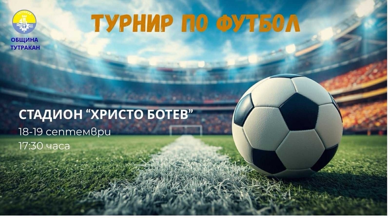 Община Тутракан организира футболен турнир, който ще се проведе на стадион "Христо Ботев" на 18 и 19 септември. Началото на спортната надпревара е в 17:30 часа.