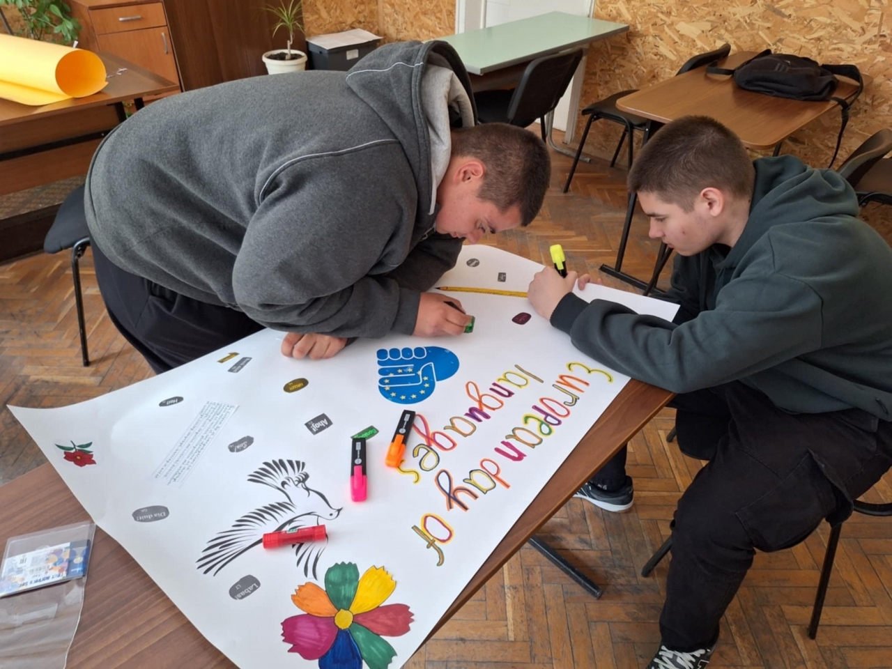 Програмата включваше тематичен урок, езикови игри, забавни предизвикателства със скоропоговорки на различни езици, както и изработването на цветно табло, посветено на празника. Събитията създадоха оживена атмосфера и доказаха, че изучаването на чужди езици е не само полезно, но и вдъхновяващо.