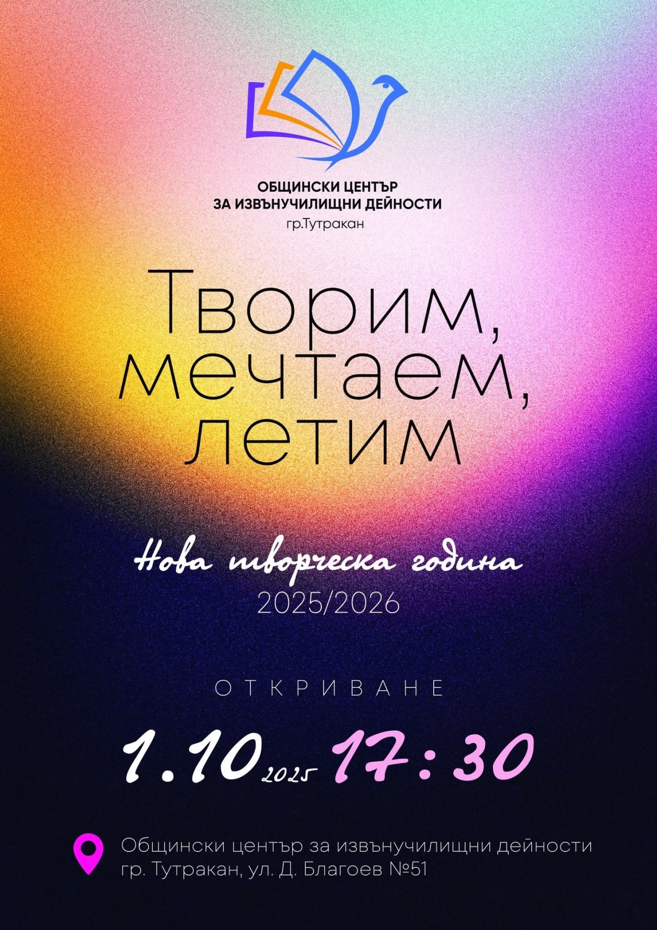 Днес, 1 октомври, в 17:30 ч. Общинският център за извънучилищни дейности в гр. Тутракан ще даде официален старт на новата творческа година 2025/2026.
