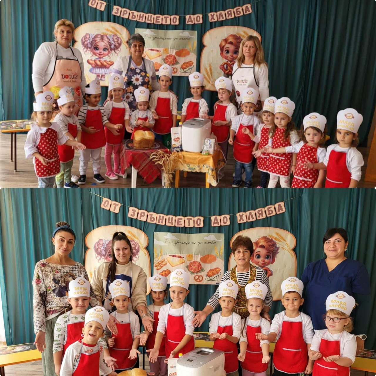 Малките пекари от групите "Мечо Пух" и "Веселите зайчета" се запознаха с пътя на хляба – от зрънцето до трапезата