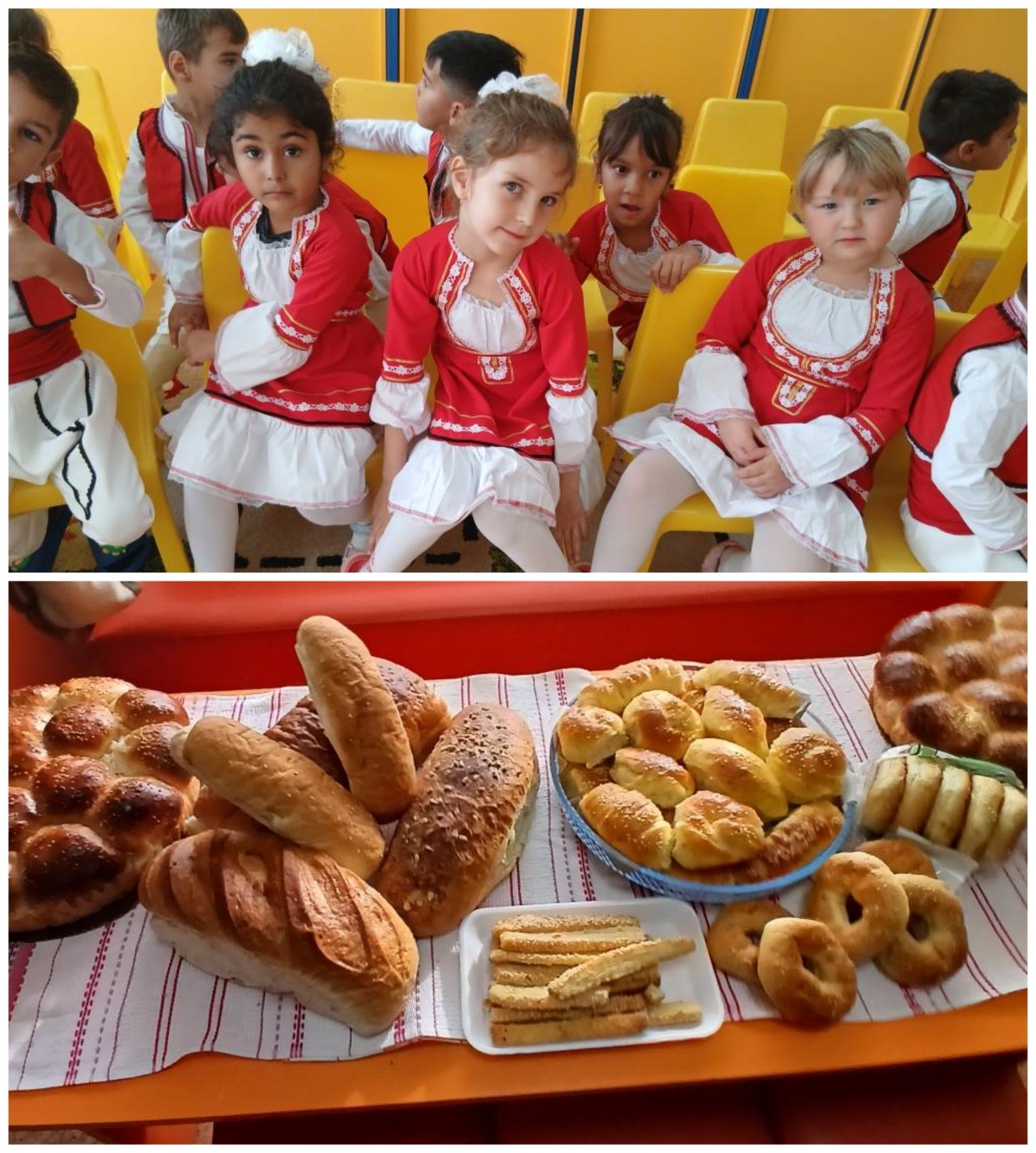 Децата, облечени в народни носии, изпълниха песни и танци, посветени на труда на земеделеца и значението на хляба като символ на живота и единството. Възпитателите представиха пред малчуганите пътя на хляба – от нивата до трапезата, а в залата беше подредена богата изложба с различни видове хляб, питки и тестени изделия, приготвени от родители и учители.