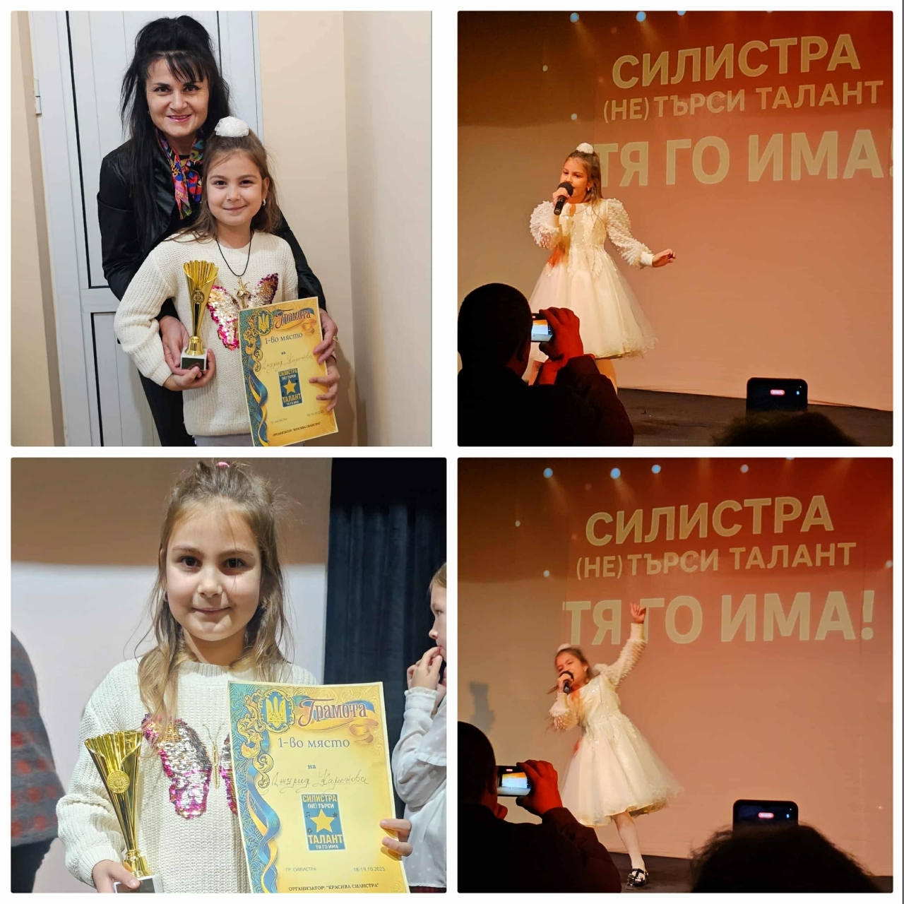 Прекрасната Джулия Каменова Петрова, възпитаничка на първи "Б" клас при СУ "Васил Левски" – Дулово и солистка на Детска вокална група "Веселие" към Народно читалище "Никола Вапцаров – 1895" с художествен ръководител Мариана Йорданова, спечели първата награда в конкурса "Силистра (не) търси талант. Тя го има!"