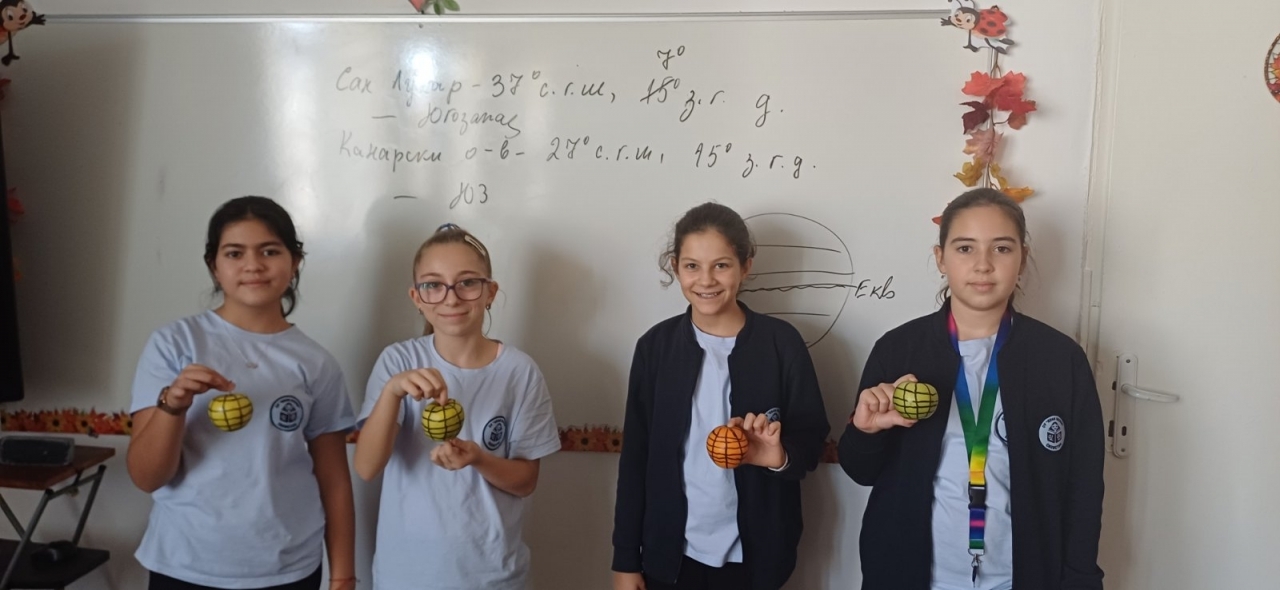 По време на урока петимците изработиха градусна мрежа върху плодове, като по този забавен и нестандартен начин усвоиха знанията за географските ширини и дължини.