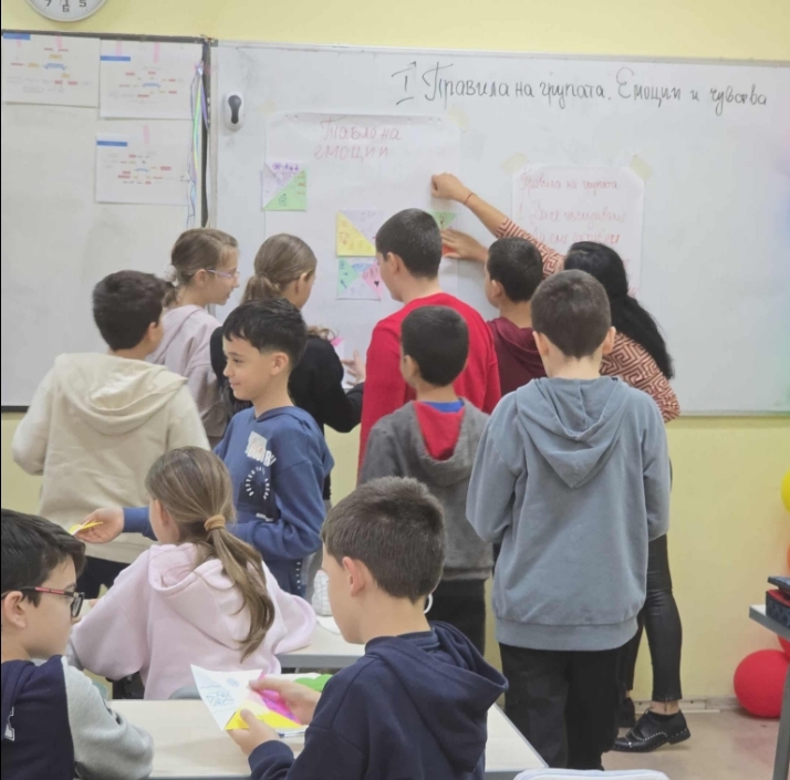 Темата на занятието – "Правила на групата. Емоции и чувства", оживя под формата на игра и открит диалог, в който децата изследваха значението на доверието, уважението и споделените емоции. С усмивки и откровени разговори те откриха, че всяка група е силна, когато в нея има разбиране, подкрепа и искреност.