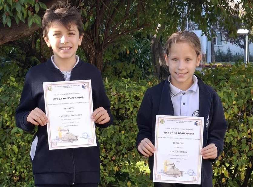 Третокласниците Алексей Йорданов и Радост Пеева от 3.б клас спечелиха второ и трето място в Областния литературен конкурс "Духът на българина".