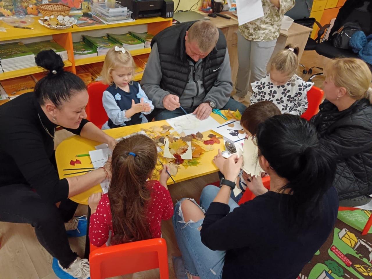 В уютна и топла атмосфера, изпълнена с есенни багри, участниците използваха шарени листа, природни материали и много въображение, за да създадат уникални апликации и малки произведения на изкуството.