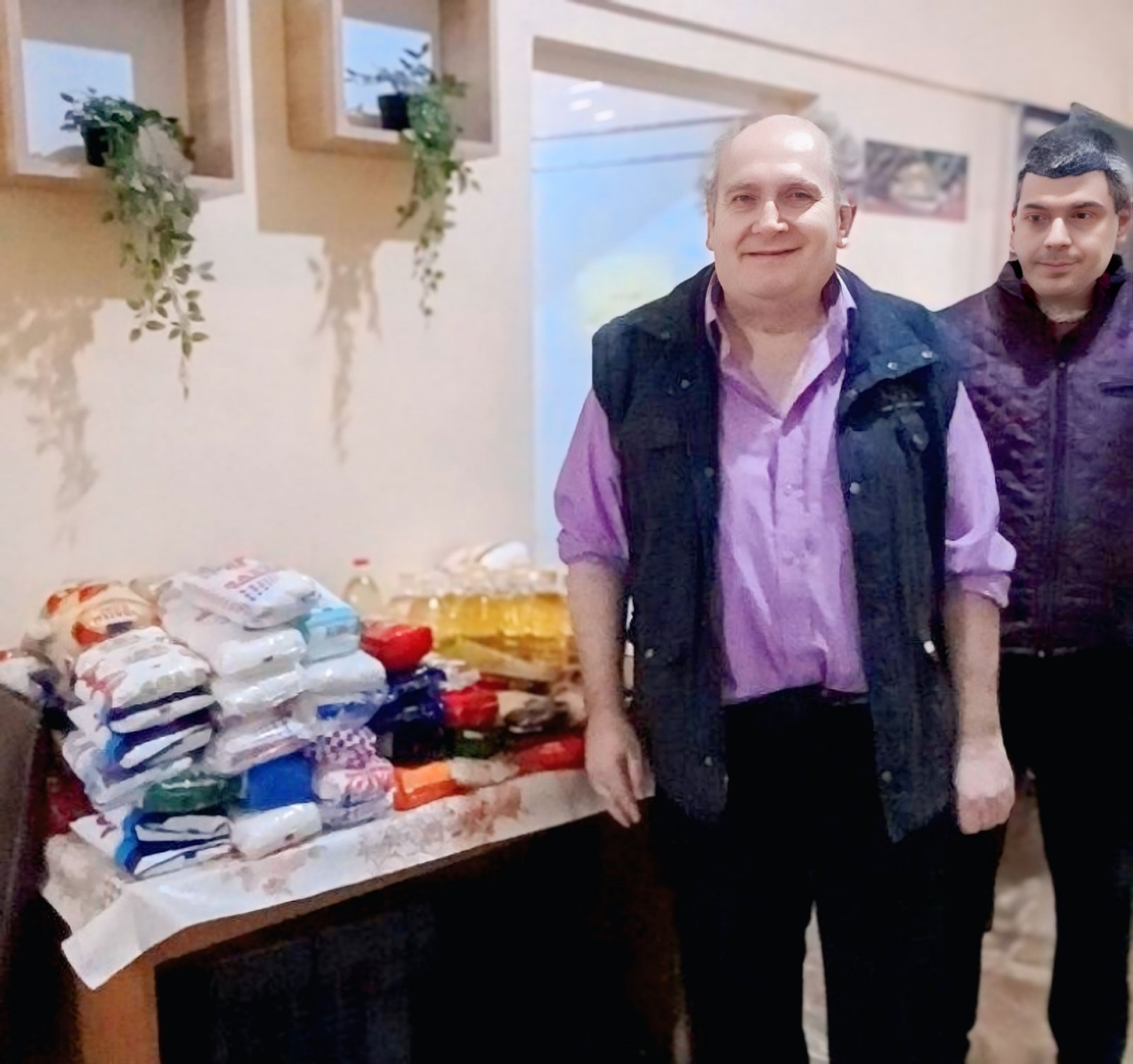 Дарението включваше основни храни от първа необходимост – олио, брашно, ориз, захар, макарони, боб, леща, консерви, както и различни пакетирани продукти и сладки изделия. Снимката, предоставена от екипа на жилището, показва подредената дарителска маса, натрупана с впечатляващо количество храни – знак за щедростта и съпричастността на децата и техните учители.