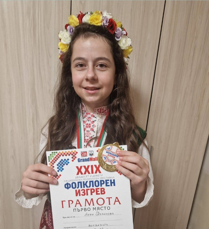 Анна Николова – солистка на Детски фолклорен формация "Добруджанче" към АНПТ "Силистра" при НЧ "Доростол – 1870", завоюва първа награда на престижния фестивал "Фолклорен изгрев", провел се във Варна. Това съобщи ръководителят Тихомир Лефтеров, който поздрави младата певица за поредното ѝ блестящо представяне на национална сцена.