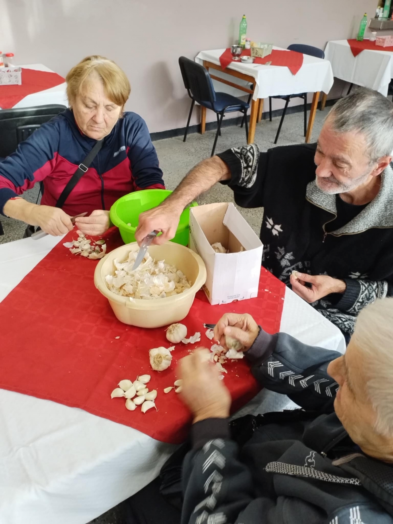 В Дом за стари хора – с. Айдемир, денят премина в уютна и приятелска атмосфера, след като група от обитателите се включиха в полезна и традиционна дейност – почистване на стар чесън за нуждите на кухненския блок.