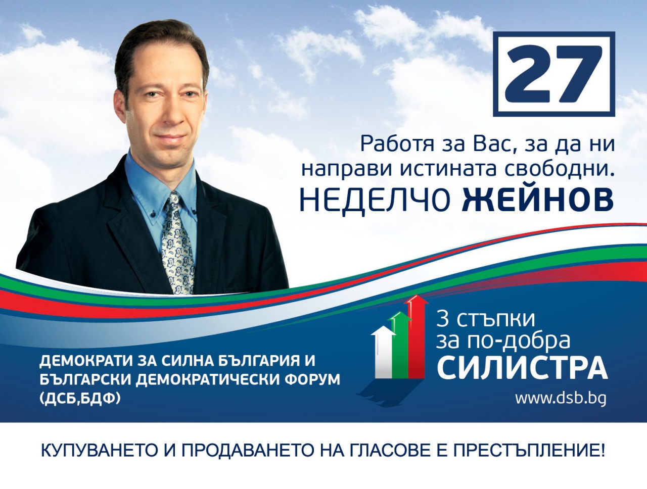 Първо: По моя убеденост лидерите на "Демократи за силна България" са ония лица от нашата най-нова история, които имат дял за условията от нашия живот поради които ние успяхме да останем тук, у дома и да се трудим за да имаме по-добър, по-свободен живот. Политиките, създавани от "Демократи за силна България" са дълбоко, скрупольозно и последователно разработени от позицията на опита и от гледна точка на бъдещето за човека, затова участвам в листите им.