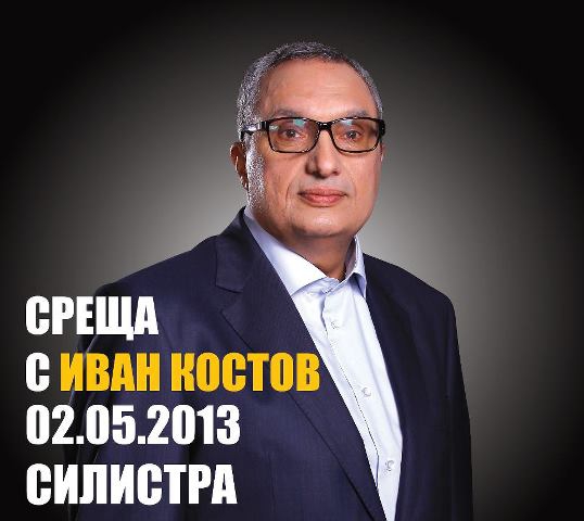 Третата предизборна среща на коалицията "Демократи за силна България" и "Български демократически форум" /КП "ДСБ" и "БДФ", бюлетина № 27 / е с г-н Иван Костов. Тя ще се проведе на 02.05 от 17 часа в залата на Младежкия дом в Силистра.