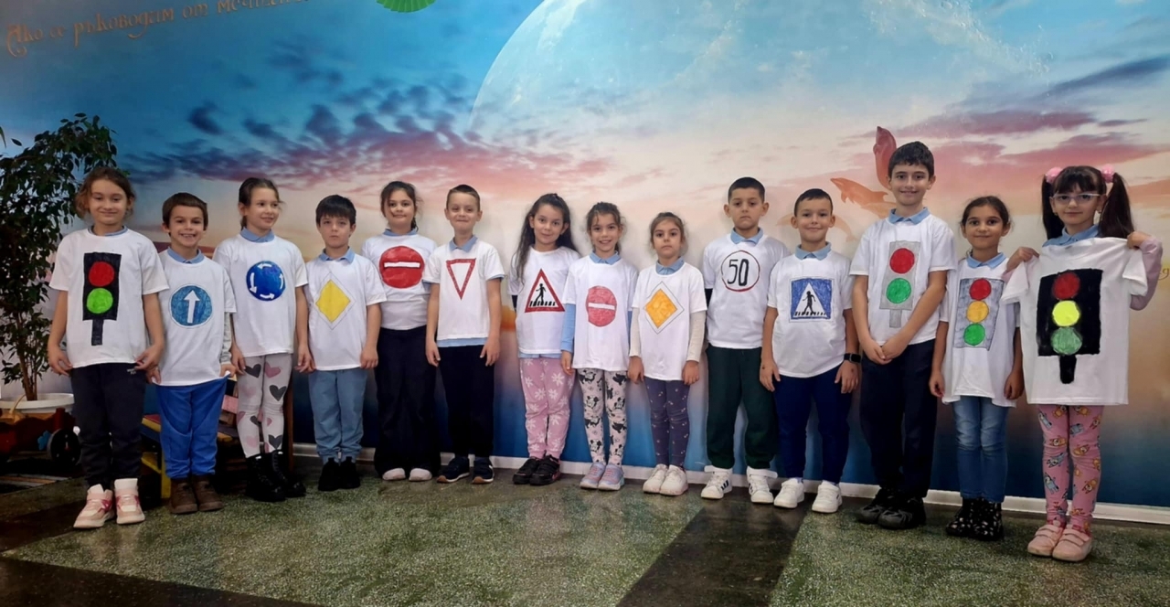 С много усмивки и творческо настроение децата изработиха пъстър постер и украсиха своите тениски с познати пътни знаци – от забранителни и предупредителни до указателни табели и светофари. Така учебното съдържание се превърна в преживяване, а правилата за движение оживяха по забавен и достъпен начин.