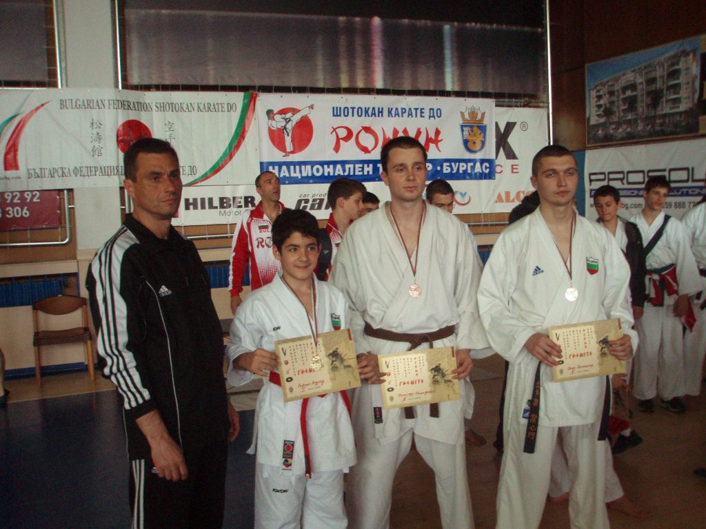 На 26 април в Бургас се проведе национален турнир по карате - купа "Ронин", в който взеха участие над 150 състезатели он цялата страна. Град Силистра бе представен от състезателите на карате-клуб "Славия - Истър" Рафаил Андреу, Деян Данаилов и Димитър Стефанов под ръководството на сенсей Сергей Петров. При единайсет годишните в дисциплината "кумите" в три изиграни срещи Рафаил Андреу постигна три победи и без загубена точка завоюва златен медал и стана безапелационен шампион. В дисциплината "ката" Андреу зае четвърто място. При мъжете в категория OPEN /отворена без значение на килограмите на състезателите/ участие взеха Деян Данаилов и Димитър Стефанов. Данаилов достигна до финала след изиграни 4 срещи, в които постигна изключителни победи и завоюва вицешампионската титла и сребърен медал. Стефанов завоюва бронзов медал, след като постигна 3 победи в изиграните срещи. Ето какво сподели сенсей Сергей Петров при завръщането си от Бургас : "Изключително съм доволен и радостен, че след успешното представяне в трудното европейско първенство в Егер /Унгария/ състезателите затвърдиха високото си ниво на подготовка и доказаха, че са в челния елит на страната". Спортно техническото ръководство наклуба изказва своята благодарност на кандидата за народен представител на ГЕРБ Стефан Господинов за оказаната финансова помощ и съпричастност към постигнатите успехи.