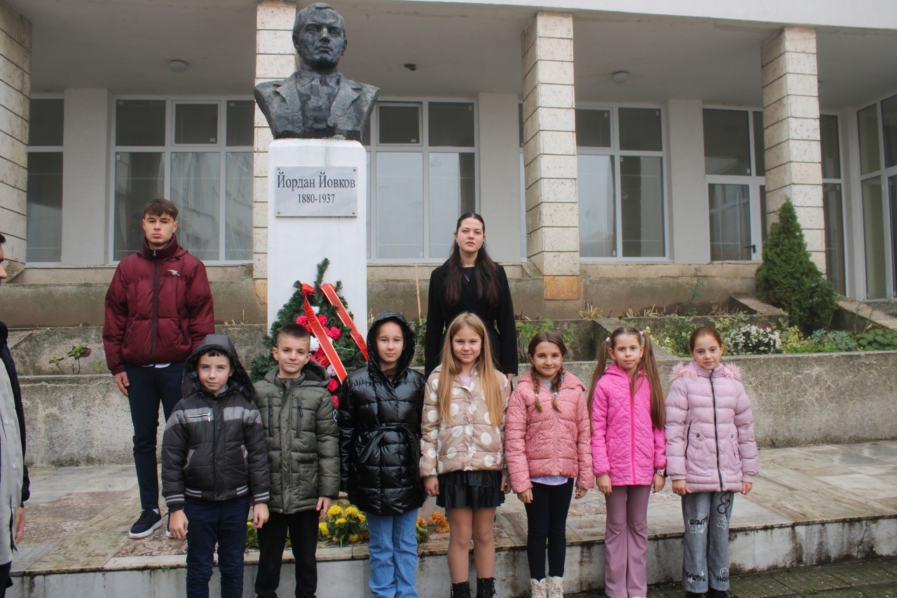 Празничният ден започна с поднасяне на венец пред паметника на Йордан Йовков в двора на училището – жест на признателност към живота и творчеството на писателя, оставил ярка следа в националната ни литература.