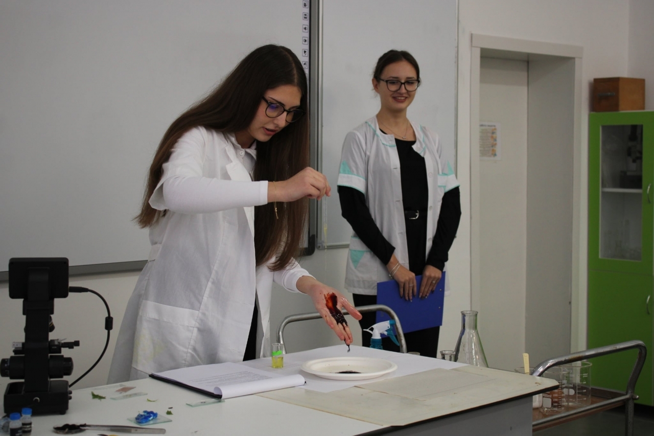 Вторият етап от образователното пътешествие се проведе в кабинета по Природни науки, където ученици от различни класове представиха опити по химия, биология и физика.