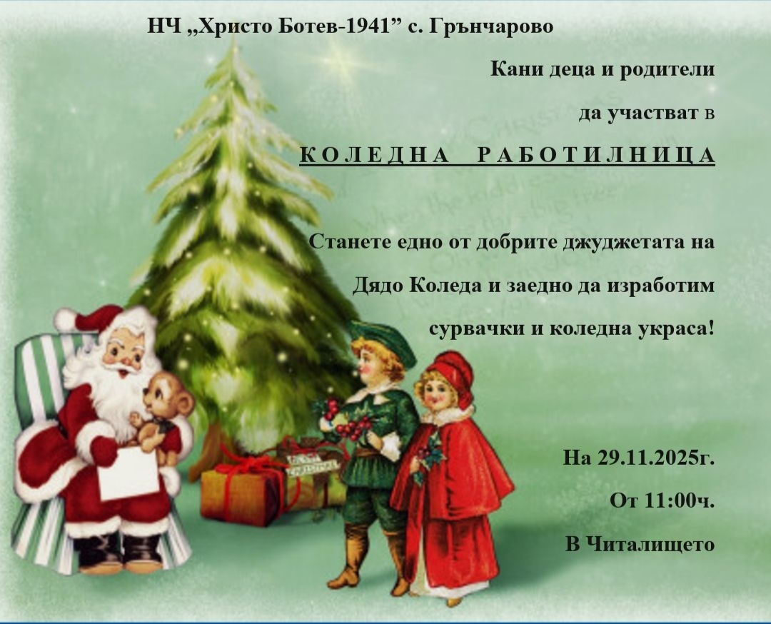 Празничното настроение пристига в село Грънчарово тази седмица. Народно читалище "Христо Ботев-1941" организира специална "Коледна работилница", която ще събере деца и родители за един творчески предиобед.