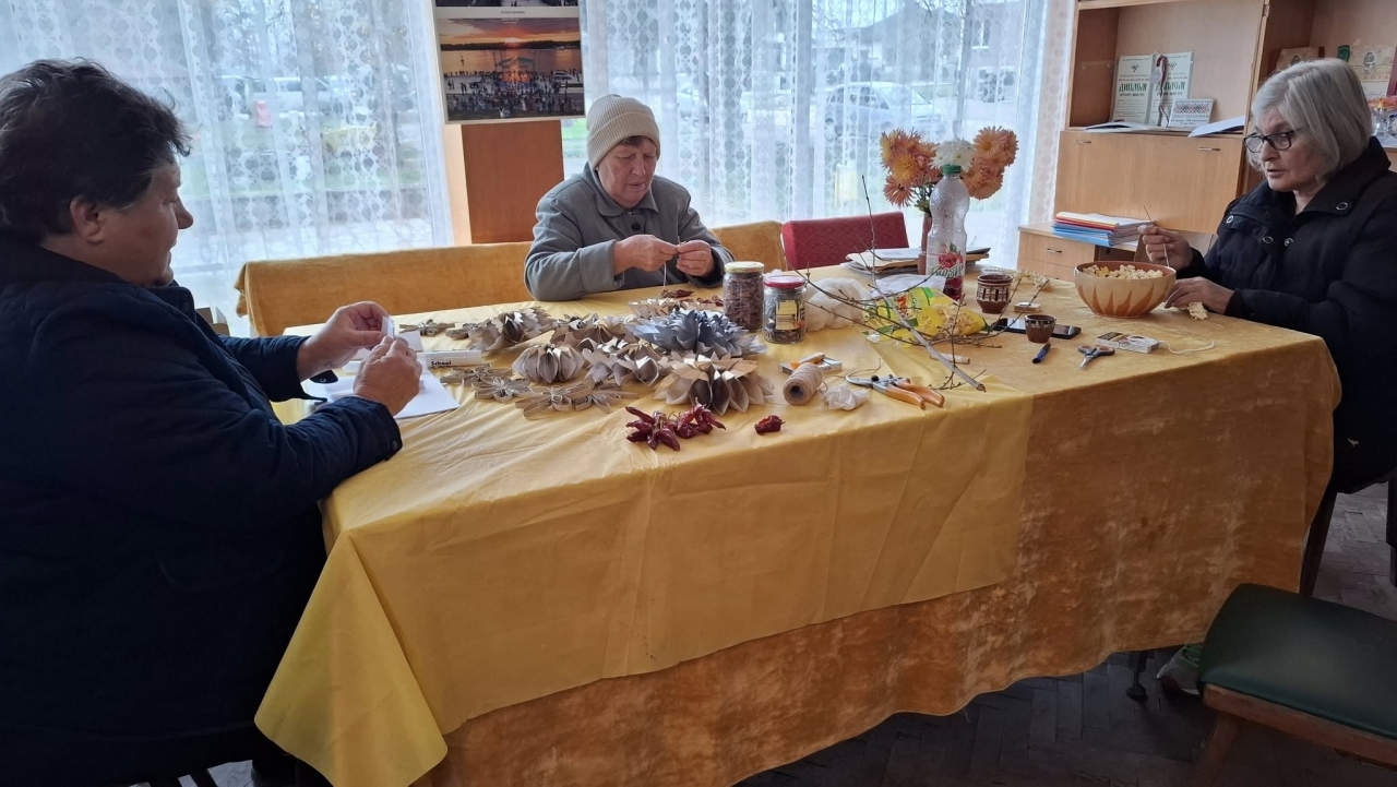 Сръчните ръце на жените от НЧ "Никола Вапцаров-1940" подготвят автентична украса за предстоящите празници.
