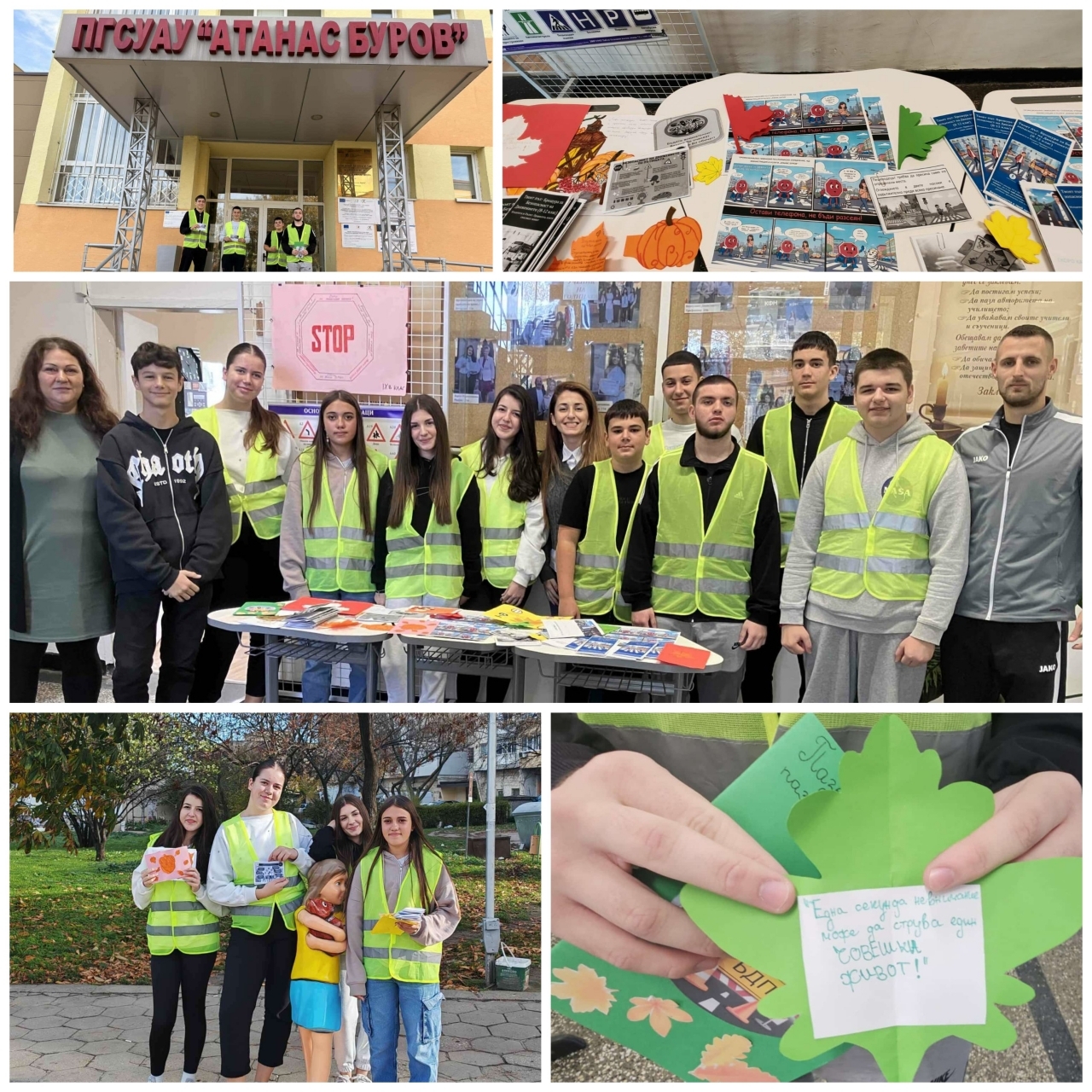 Възпитаници на ПГСУАУ "Атанас Буров" се включиха в инициативата по БДП ,,Послания на есенния лист"