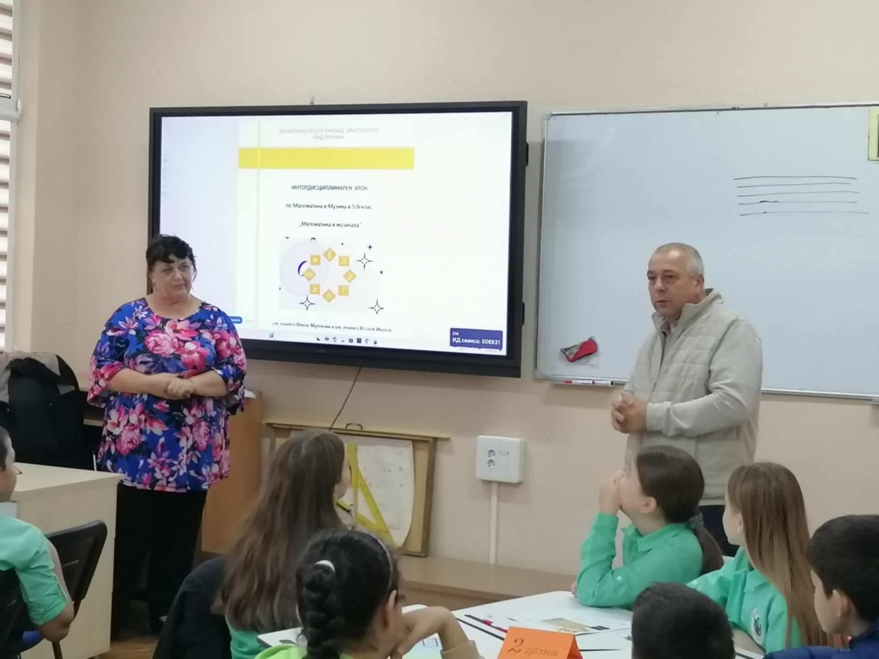 На 28 ноември 2025 г. класните стаи се превърнаха в сцена на знанието, където старши учителят по математика Ценка Маринова и старши учителят по музика Володя Иванов проведоха два открити интердисциплинарни урока на тема "Математика в музиката". В предизвикателството се включиха учениците от 5."а" и 5."б" клас.