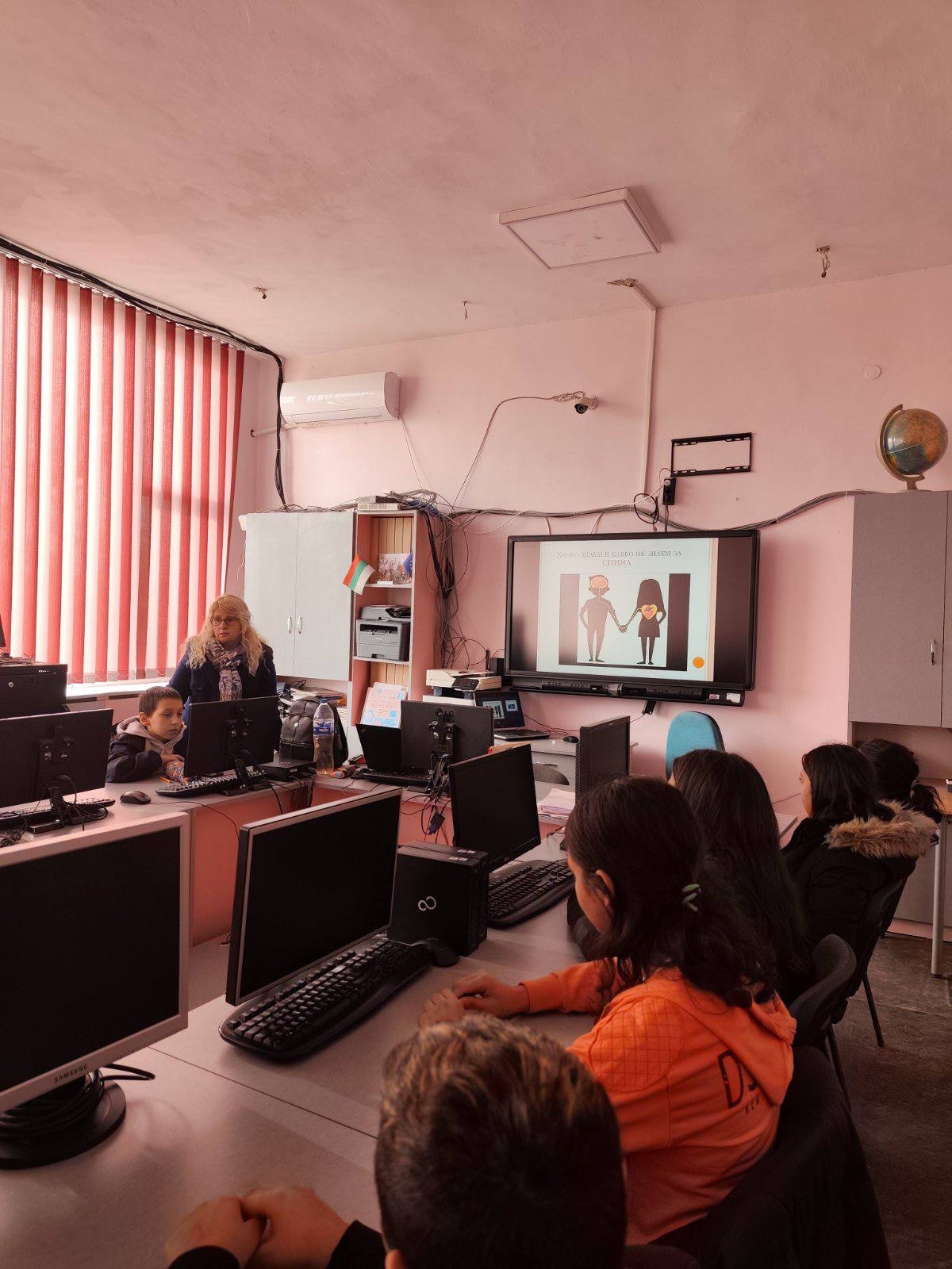 В специален информационен час, онагледен с мултимедийна презентация, децата обсъдиха темата "Какво знаем и какво не знаем за СПИН". Преподавателите разясниха на достъпен език рисковете, начините за превенция и важността на толерантното отношение към засегнатите от болестта.