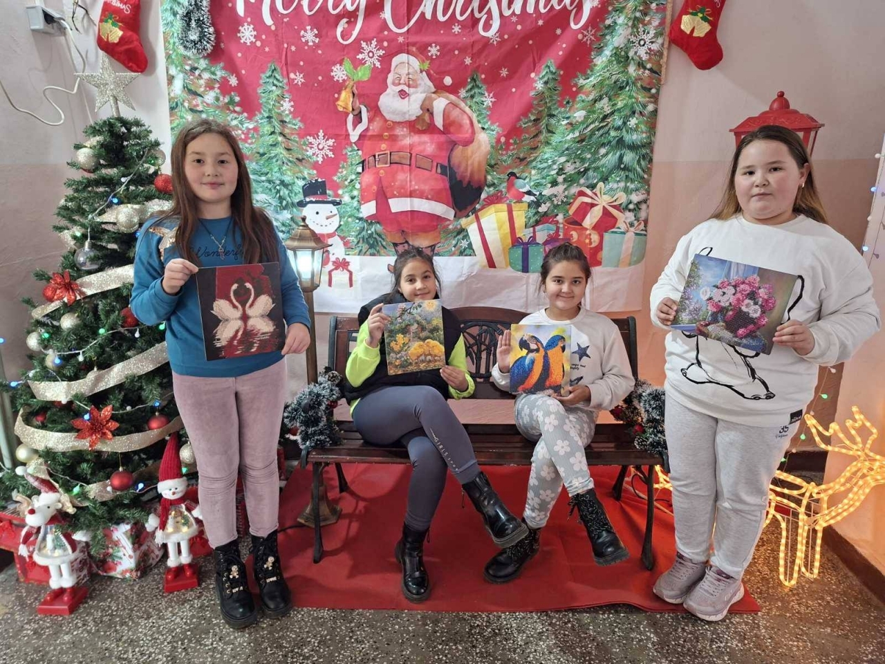 Създаването на диамантени гоблени изисква търпение и прецизност, които децата демонстрираха с лекота. Фокусирани върху детайла, те успяха да сътворят картини с разнообразни сюжети – от изящни лебеди и пъстри папагали до красиви цветни натюрморти.