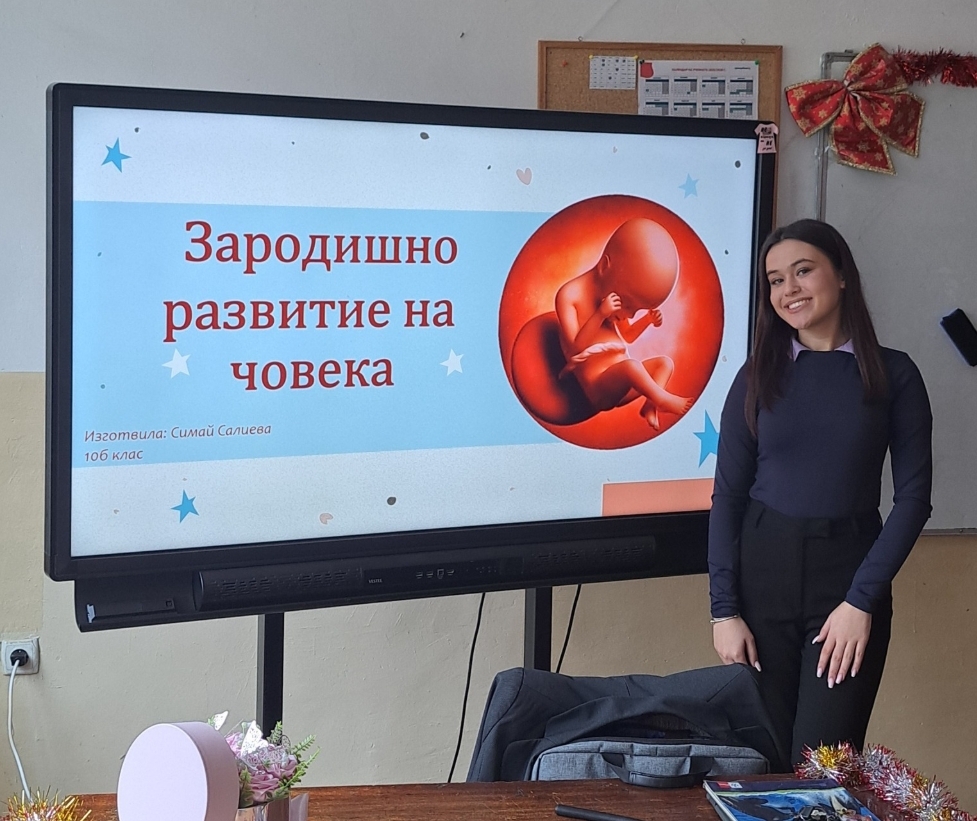 В СУ "Васил Левски" – гр. Дулово, ученичката Симай Салиева Джевдетова от 10.б клас представи впечатляваща презентация на тема "Зародишно развитие на човека", която привлече вниманието на своите съученици и предизвика активен интерес към една от най-важните теми в биологията.
