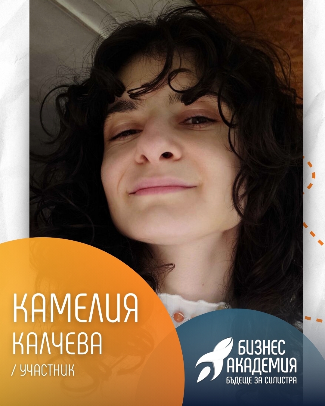 Камелия споделя, че участието ѝ в Бизнес академията ѝ е помогнало да структурира визията си, да развие по-ясен път за развитие на своя бранд и да получи насоки от експерти, които да превърнат творческата идея в устойчива предприемаческа концепция.