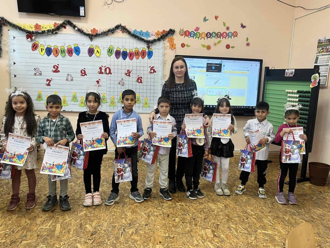 В празнично украсената класна стая най-малките показаха какво са научили през първите месеци в училище. Чрез игри, задачи и творчески дейности те превърнаха математиката в истинско приключение, като демонстрираха умения да разпознават, записват и прилагат цифрите в различни ситуации.