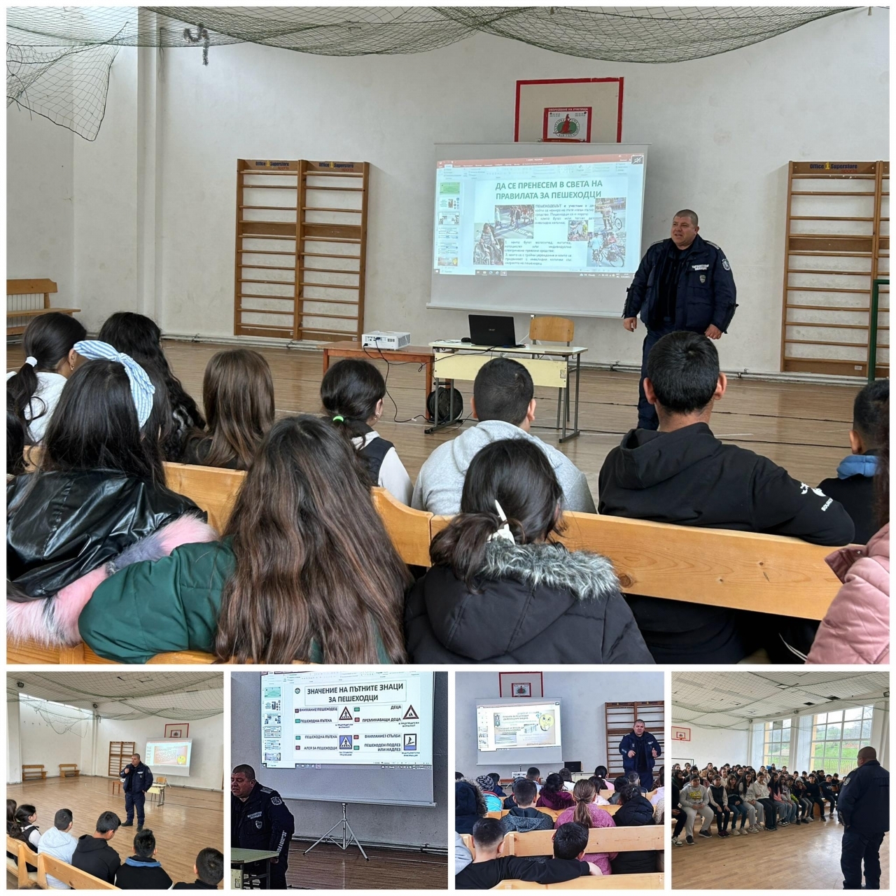 Полицейският инспектор Ясен Янакиев представи пред децата основните правила за движение, значението на пътните знаци, както и отговорното поведение на пешеходци и водачи. Учениците бяха запознати с добри практики за безопасно пресичане, движение в близост до пътното платно и правилно използване на светлоотразителни елементи.