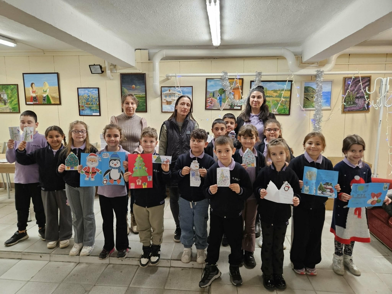 Малките участници се впуснаха с ентусиазъм и старание в сътворяването на красиви коледни картички. Всяка от тях беше изпълнена с топли послания и творчество, отразяващи детското въображение и празничния дух.