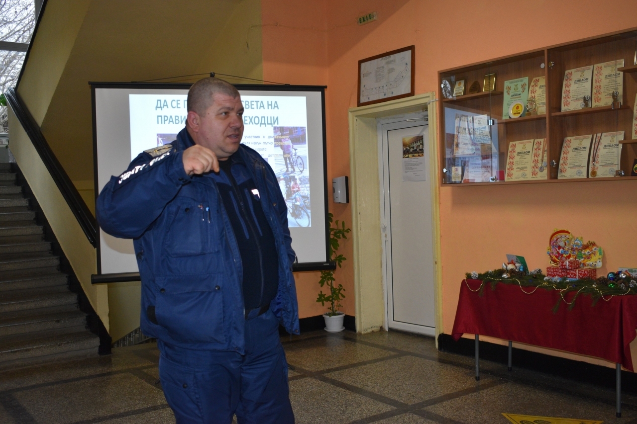 Полицейският инспектор Ясен Янакиев изнесе полезна беседа, насочена към поведението на пешеходците и водачите, подчертавайки значението на вниманието, дисциплината и спазването на правилата. Заедно с учениците бяха разгледани реални примери и ситуации, които да подпомогнат превенцията на инциденти.