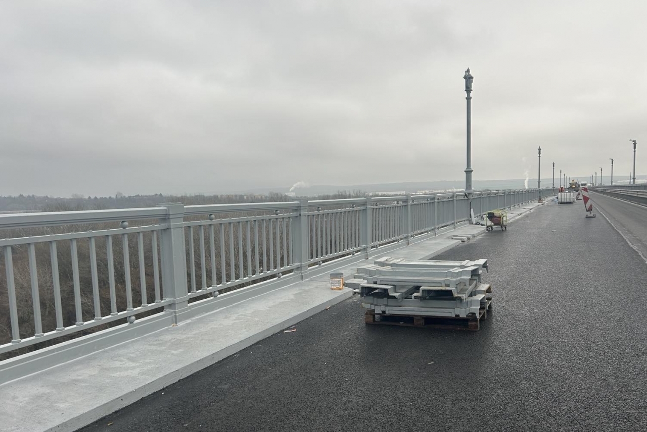 Монтирани са парапетът и стълбовете за осветление на Дунав мост при Русе
