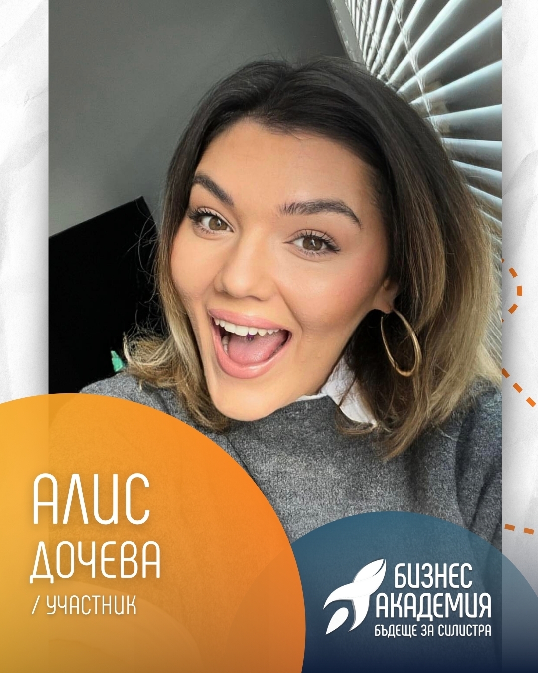 Продължаваме с вдъхновяващите участници от Бизнес академия 2025, като днес фокусът е върху една от най-усмихнатите и креативни дами в програмата – Алис Дочева. Тя представи предложение, което веднага привлече вниманието на журито със своята социална значимост и огромен потенциал за развитие в региона.