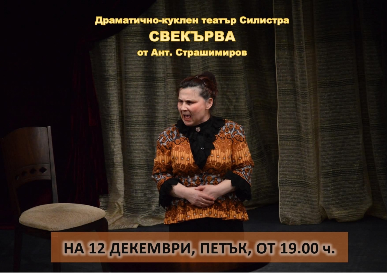 В Драматично-кукления театър – Силистра остават последни 13 билета за комедията "Свекърва", която ще се играе тази вечер, 12 декември, от 19:00 часа. Това съобщи директорът на театъра Златина Станева, като подчерта, че интересът към спектакъла е изключително голям.