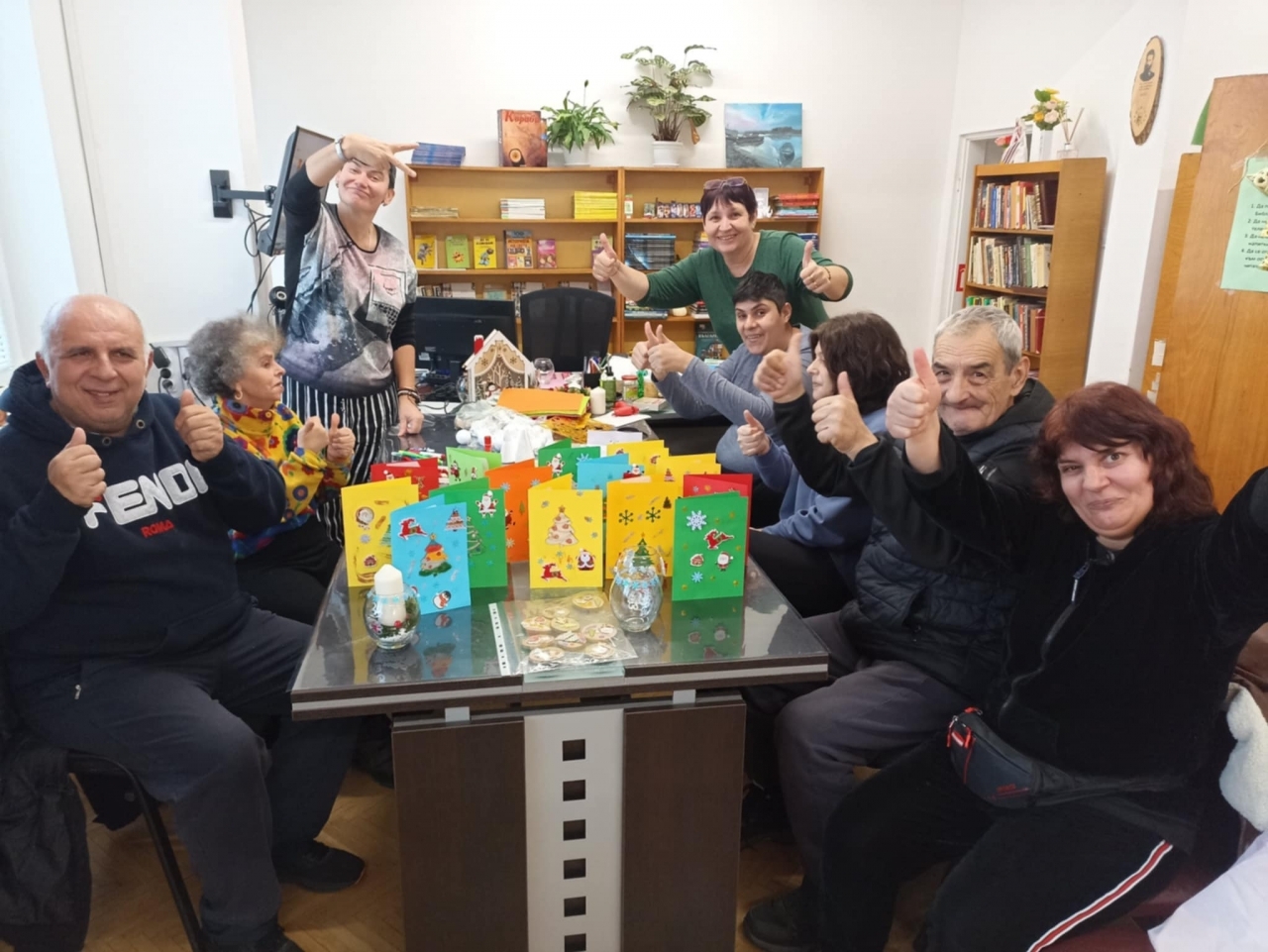 Потребители на Центъра за настаняване от семеен тип за пълнолетни лица с психични разстройства и Центъра за настаняване от семеен тип за пълнолетни лица с умствена изостаналост в село Айдемир, със съдействието на местната библиотека, изработиха коледни картички и празнични магнити в уютна и вдъхновяваща атмосфера.