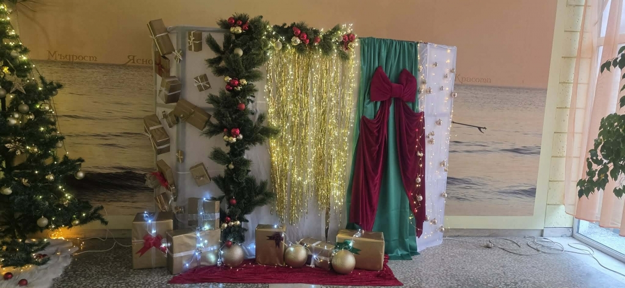 Елхата, светлинните акценти и тематичните декорации носят усещане за споделеност и очакване на Коледа и Новата година, като допринасят за положителната емоционална среда в училището в последните дни на годината.