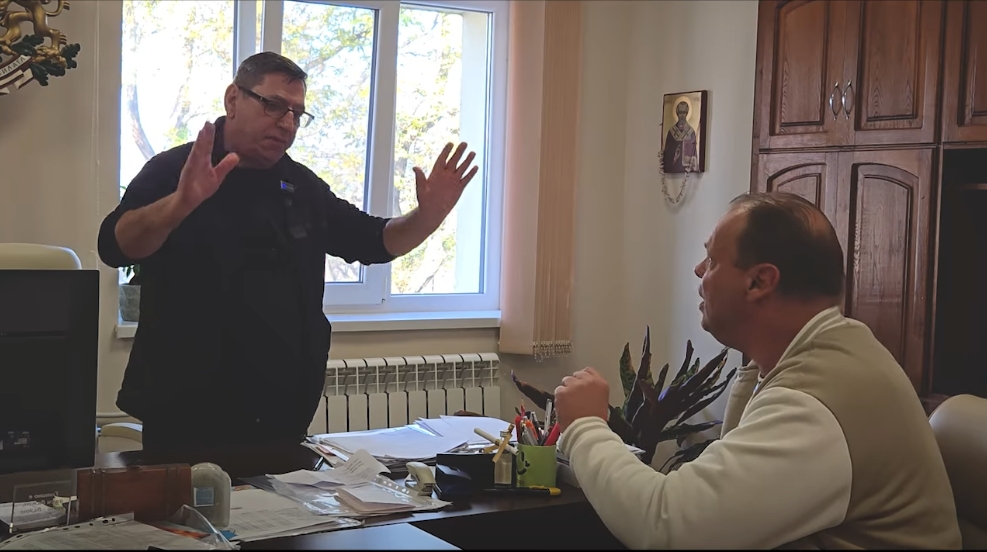Разговорът, проведен в кабинета на кмета, бързо прераства в остър спор и завършва с преждевременно прекратяване на интервюто.