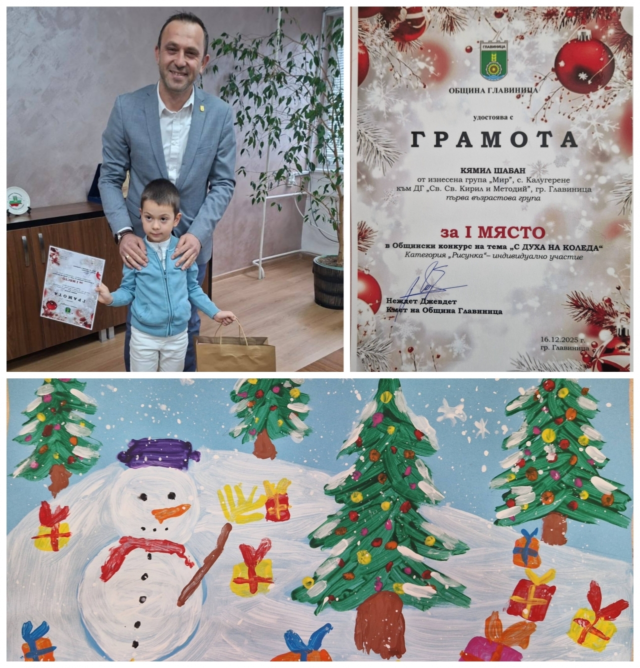 В категория "Рисунка", първа възрастова група, с отлично представяне се отличи Кямил Шабан, който беше награден за своето старание, въображение и автентично пресъздаване на коледното настроение.