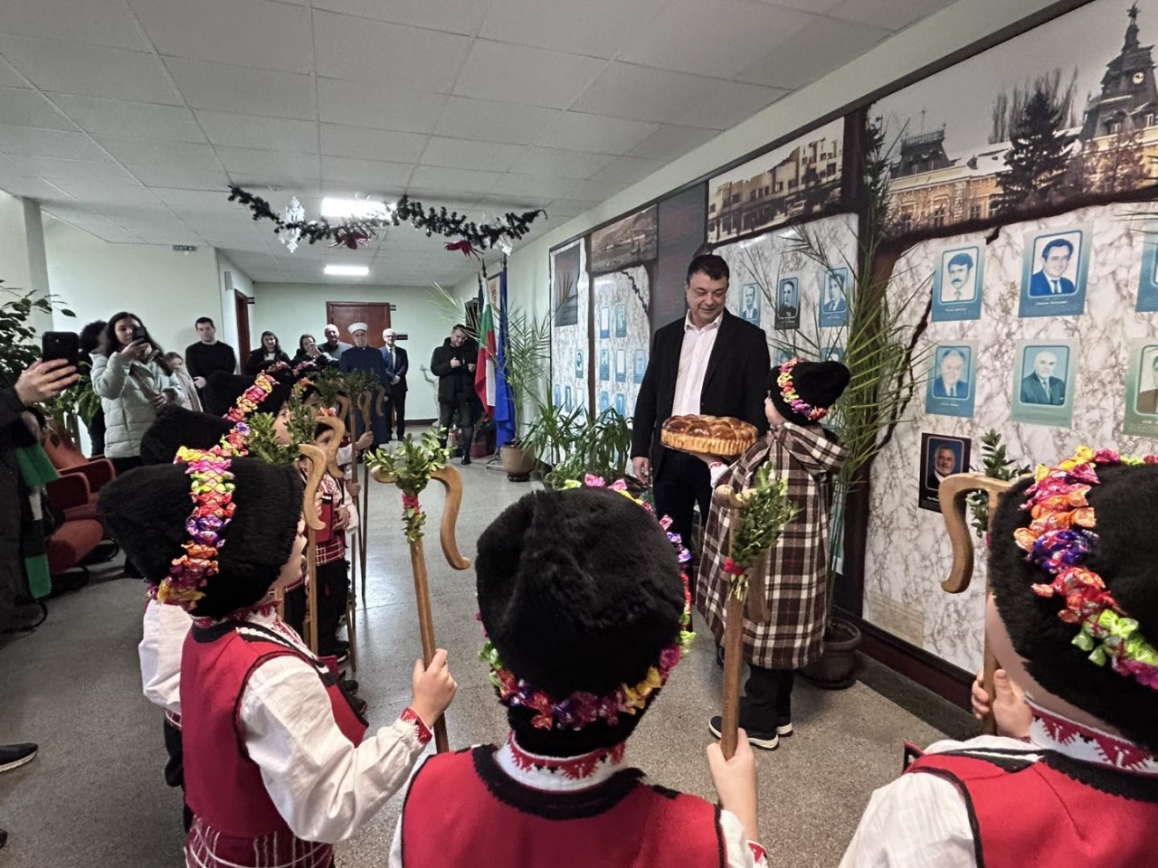 Кметът на общината Александър Сабанов посрещна децата и изрази благодарност за топлите пожелания и радостта, която донесоха със своето участие. С традиционни песни и благословии малчуганите отправиха своите наричания както към колегите в администрацията, така и към жителите на общината.