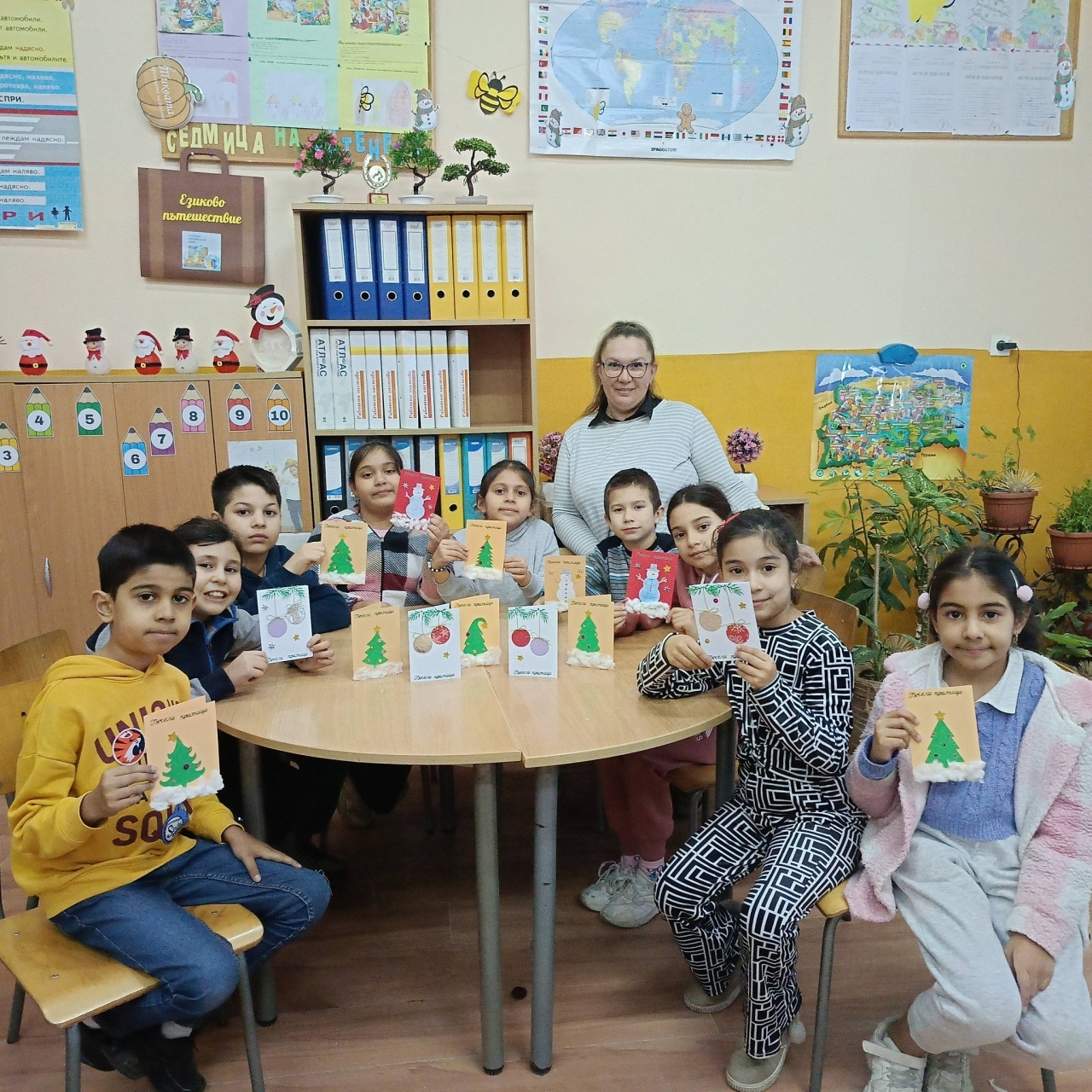 С много усмивки, въображение и празнично настроение учениците от II група за целодневна организация на учебния ден се включиха в инициативата, като изработиха и апликираха коледни картички, които надписаха с топли и искрени пожелания. Картичките са предназначени за техни връстници от ОУ "Васил Левски" в село Малиново, община Ловеч.