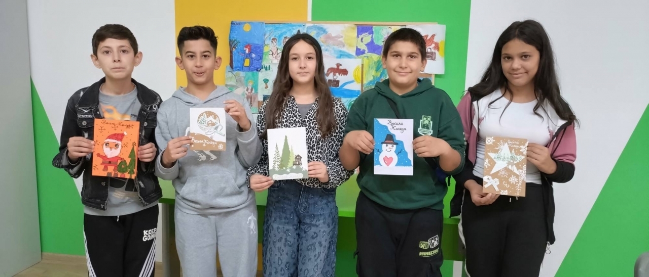 С много въображение и старание учениците представиха ръчно изработени коледни картички и празнични изделия, които се превърнаха в истински посланици на доброто. Базарът внесе топлина, усмивки и усещане за споделеност, а училището се изпълни с празнична атмосфера.