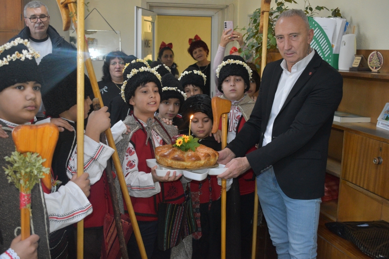 Коледари от училищата в Средище внесоха празнично настроение в Кметството