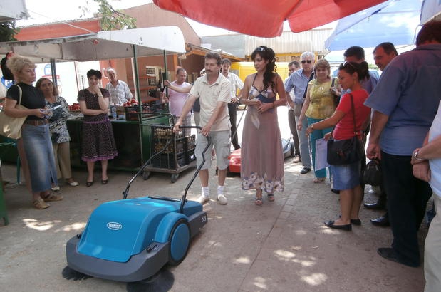 Общинско предприятие "Общински пазари" се сдоби с чисто нова немска машина за почистване на градския пазар. Презентация на 3 подобни машини бе направена днес на централен градски пазар в присъствието на г-жа Десислава Денчева – директор на ОП "Общински пазари, г-н Димо Стоев зам. – кмет "Икономика и финанси", г-жа Мария Димитрова – председател на Общински съвет, общински съветници, граждани и минувачи.