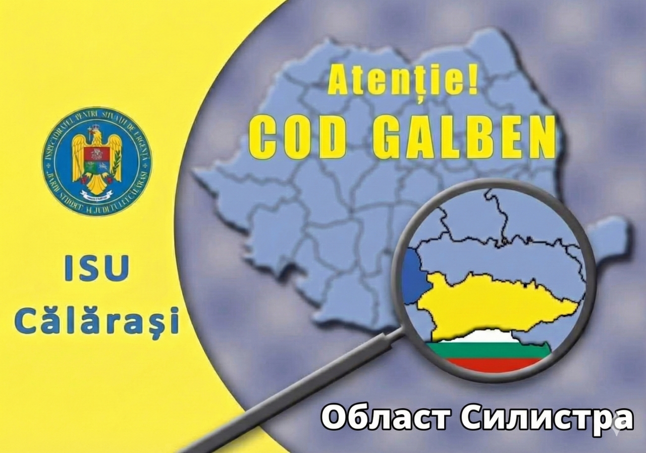 Инспекторатът за извънредни ситуации ISU – Кълъраш обяви жълт код за силен вятър за съседния на Силистра окръг Кълъраш.