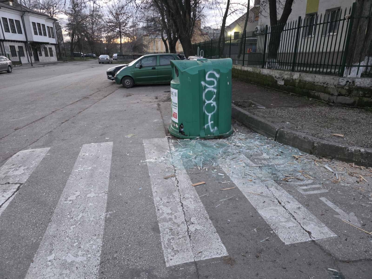 По информацията, изпратена до редакцията, множество парчета счупено стъкло са разпръснати както по пътното платно, така и върху самата пешеходна пътека, в непосредствена близост до контейнерите за смет. Ситуацията представлява реална опасност за преминаващите пешеходци, включително деца и възрастни хора, както и за велосипедисти и домашни любимци.