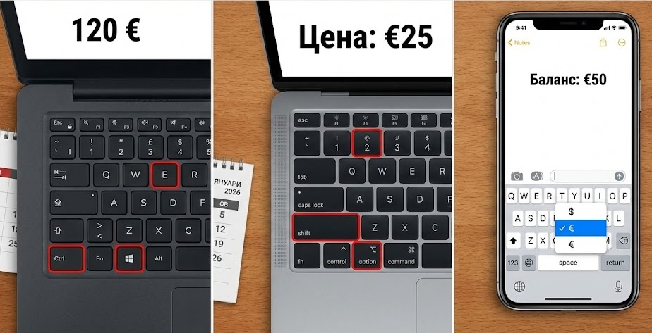От днес, 1 януари 2026 година, България официално използва еврото като национална валута. Наред с финансовите и административни промени, за много потребители възниква и чисто практичен въпрос – как правилно да се изпише символът за евро (€) на компютър, лаптоп или мобилно устройство, тъй като той не е обозначен директно върху повечето клавиатури.