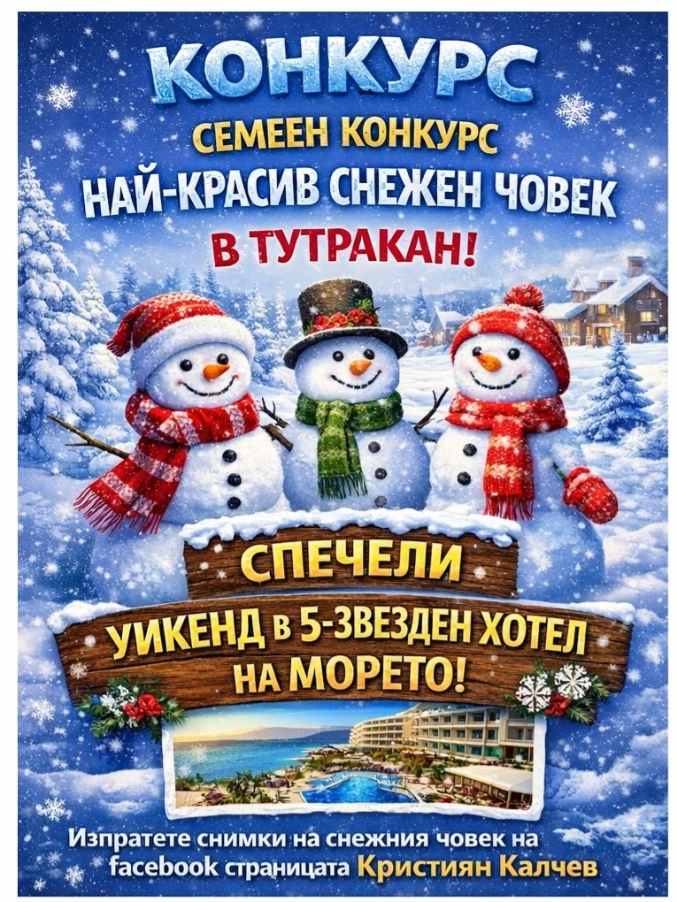 Общинският съветник Кристиян Калчев обяви семеен конкурс под надслов "Най-красив снежен човек в Тутракан", насочен към жителите на Тутракан.