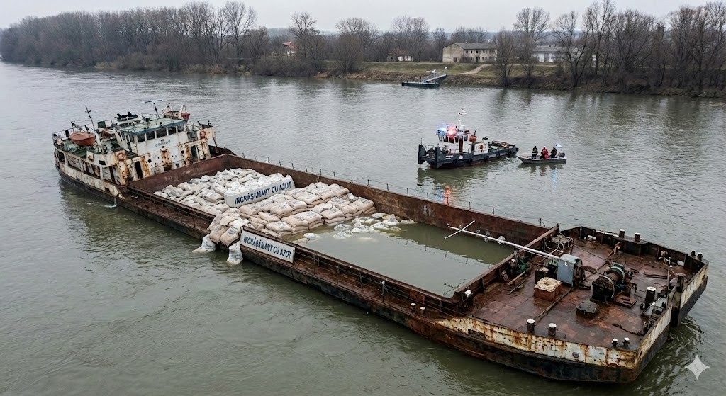След потъването на баржа, натоварена с 1133 тона азотни химически торове, в река Дунав край румънския град Зимнич, властите в Румъния извършват непрекъснат мониторинг на водите. Градът се намира срещу българския Свищов, а информацията за инцидента беше разпространена от кореспондента на БТА Мартина Ганчева.