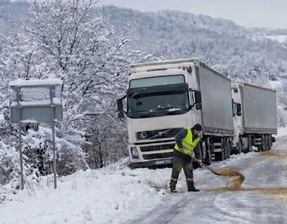 Зимата продължава да създава проблеми: Два тира закъсаха на пътя между Босна и Суходол