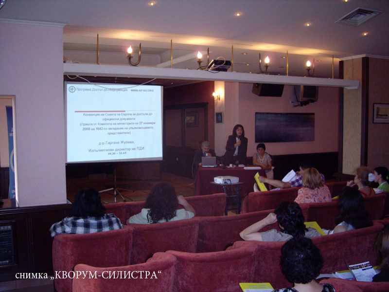 На 6 юли в Силистра се проведе поредният семинар на тема: "Разяснителна кампания за новите стандарти за достъпа до информация", 19-ти от 2008 година насам (засега пред повече от 1 000 души – аудитория). В него участваха близо 50 представители на администрации (област, общини, териториални звена на министерства и др. регионални структури; 13 медии и 15 неправителствени организации). Лектори бяха Гергана Жулева, изпълнителен директор на Фондация "Програма достъп до информация" – София и шефът на адвокатския екип на фондацията Александър Кашъмов. Проектът е по "Финансов механизъм на европейското икономическо пространство за подкрепа на неправителствените организации – България". Семинарът бе открит от Тодора Цонева, заместник-областен управител, бивш съдружник в електронна медия в Силистра.